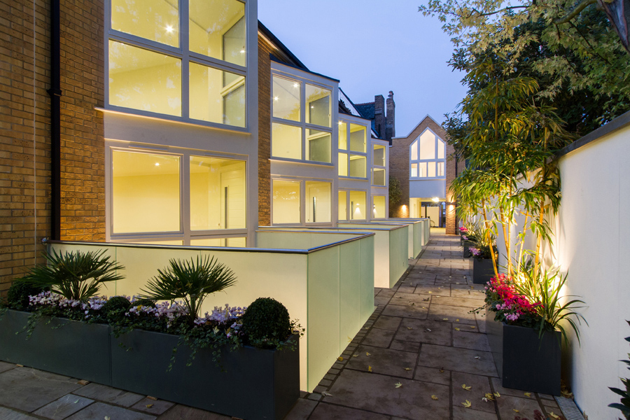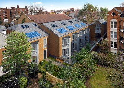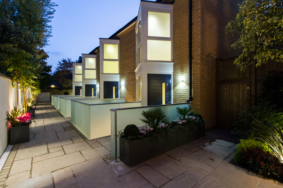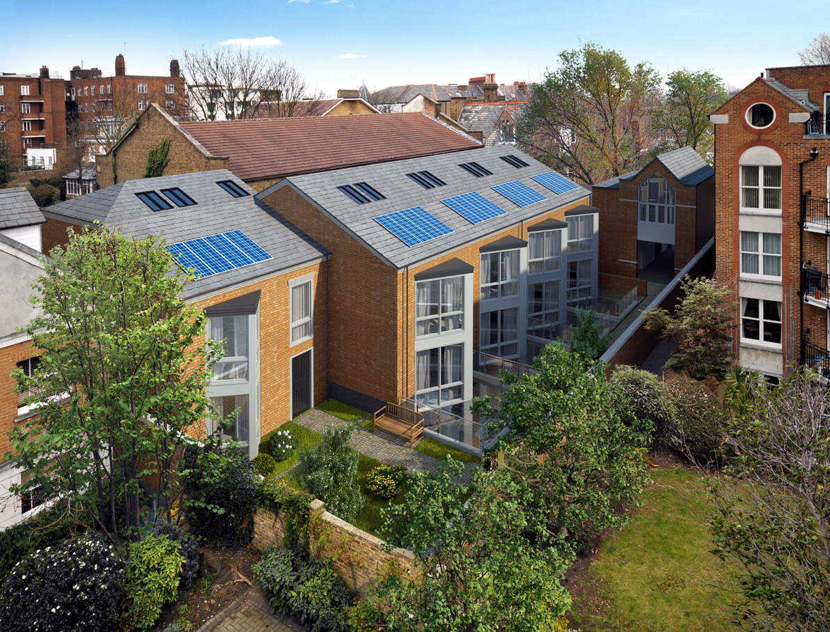 New build mews houses with basements off Upper Richmond Road, designed by Brian Smith Architects.